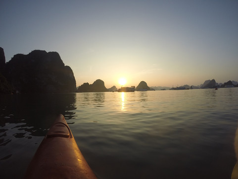 Ha Long Bay was beautiful filled with individual limestone mountains jutting out of the water. The mountains are all sporadic, randomly displayed throughout the bay and the overall view is incredible. We took out kayaks and wove around the jutting mountains, saw monkeys swinging from tree to tree and swam in the green water. Gabi Rosen yet again found love in a hopeless place with our tour guide, Beyin, who romantically kayaked her across the bay. And I finally understood what Ed Sheeran was talking about when he sings "I see fire inside the mountain" as we watched the sun set into the mountains.
